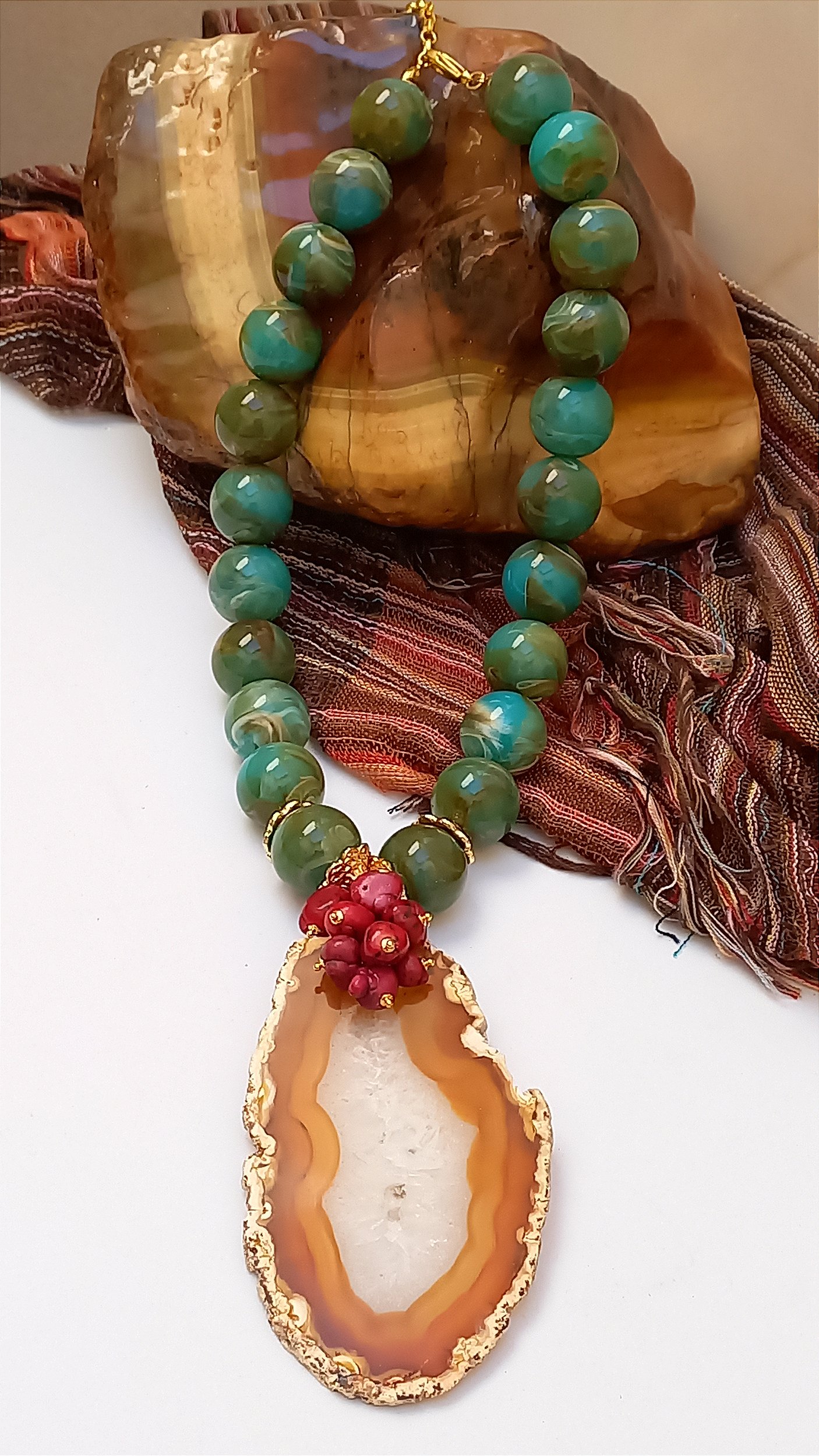 Colar Curto Ágata e Esferas Grandes, uma bijouteria exuberante, com lasca de ágata, cascalhos vinho, esferas