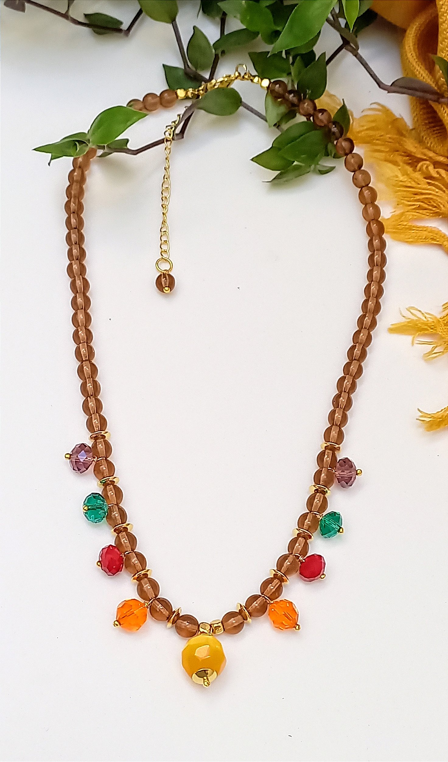 Colar Curto Porcelanas e Cores, uma bijouteria maravilhosa, com cristais coloridos, porcelanas marrons e