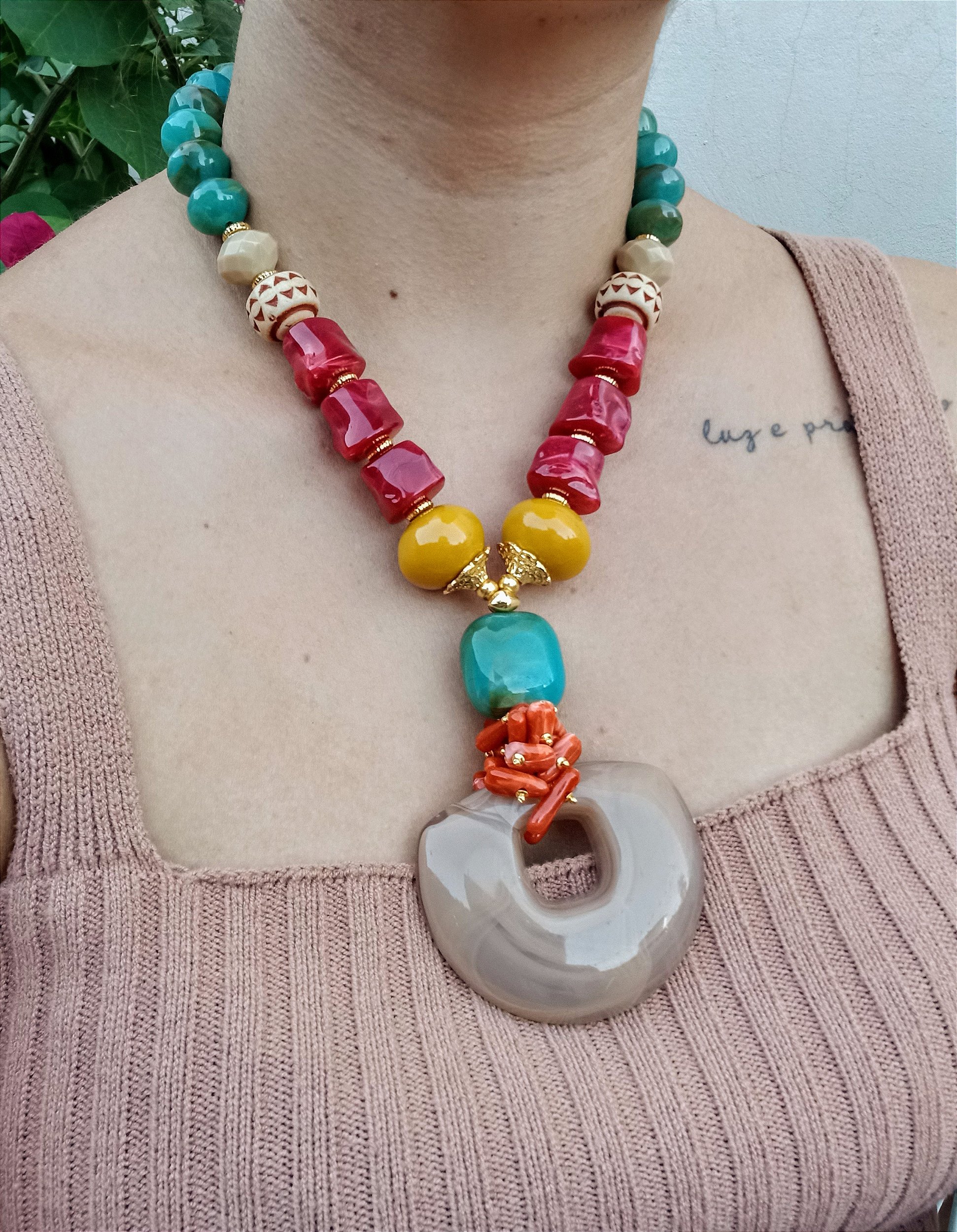Max Colar Terra Fértil, uma bijuteria com resinas maravilhosas em diversas formas e cores.