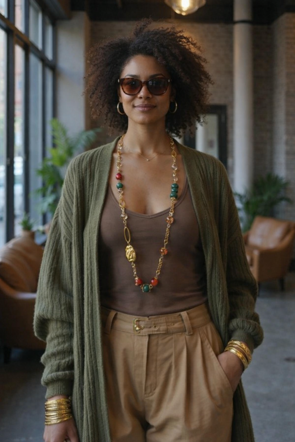 Colar Longo Verde Red, um acessório em bijuteria em dourado, com pedras naturais, cristais,