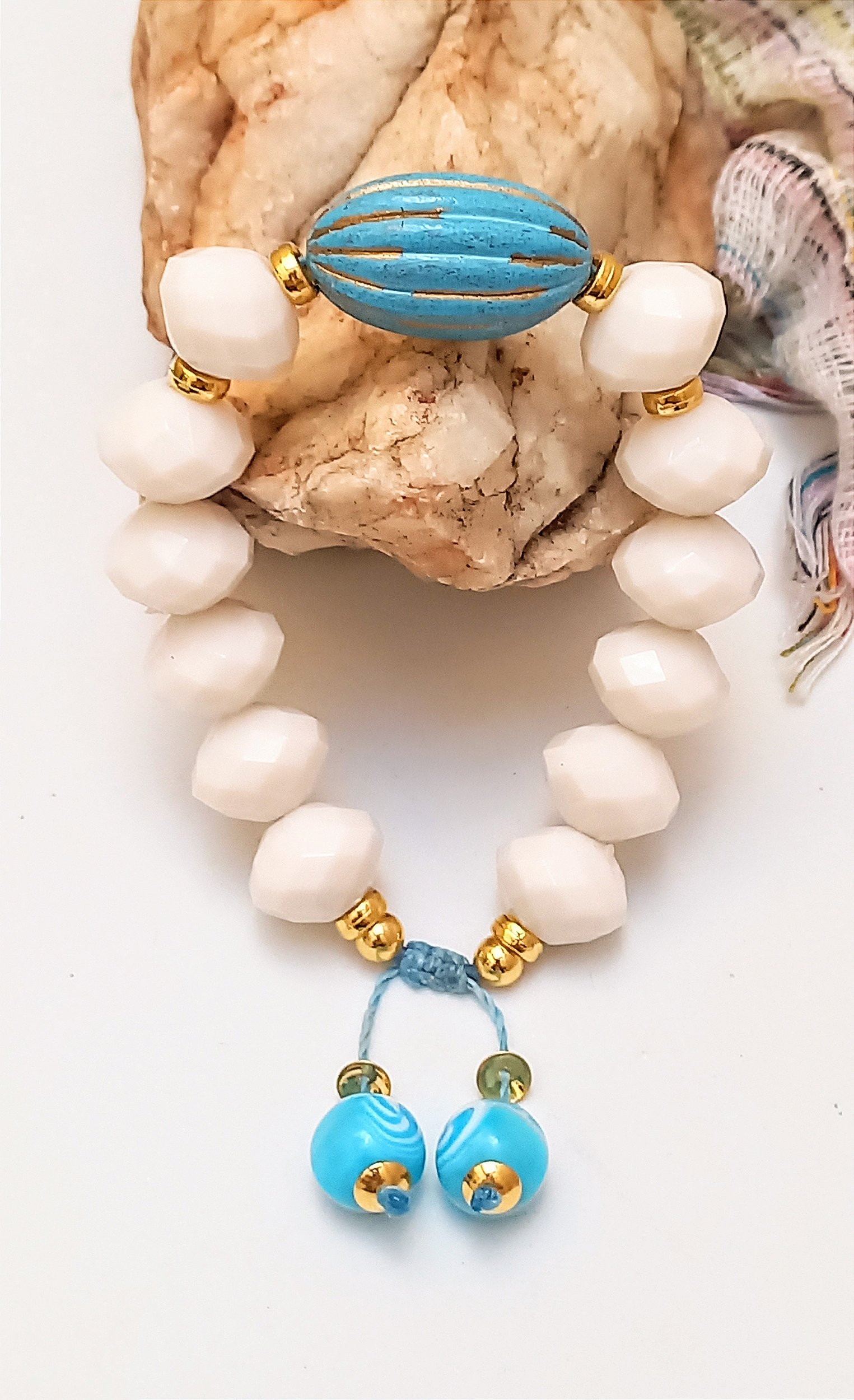 Pulseira Nuven, uma bijuteria com detalhes em dourado, pedras em resinas, muito despojada e moderna.